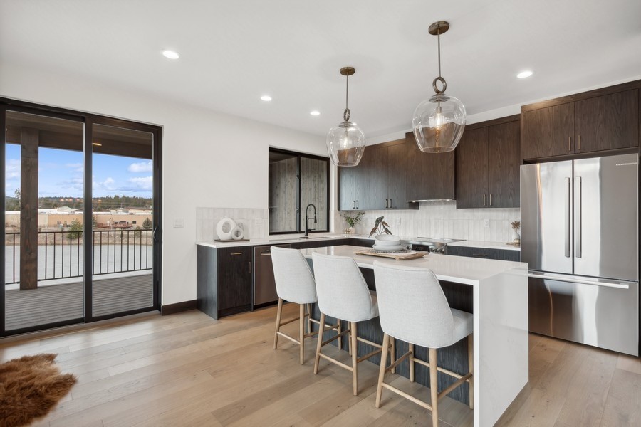 Great Value! 1950 Whitefish Ave blends comfort, style, and location in perfect harmony. This spacious 3-bedroom, 2-bath townhouse offers over 2,300 sq ft of beautifully finished living space, plus a private 1-bedroom, 1-bath guest suite with garage entry--ideal for visitors, a home office, or flex space. Inside, warm wood beams, a cozy fireplace, and a chef's kitchen with Bosch appliances, stone countertops, and a large island create an inviting space for gathering. Expansive windows frame stunning views of Eagle Lake and the Columbia Mountains, giving the home a peaceful, elevated feel. The lower-level guest suite/flex space includes a kitchenette, covered patio, and hot tub hookups--adding extra versatility. Just minutes from downtown Whitefish, the ski resort, and Glacier National Park, this home offers the best value per square foot in the area--a rare blend of space, style, and location!