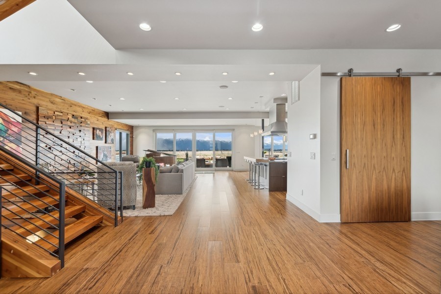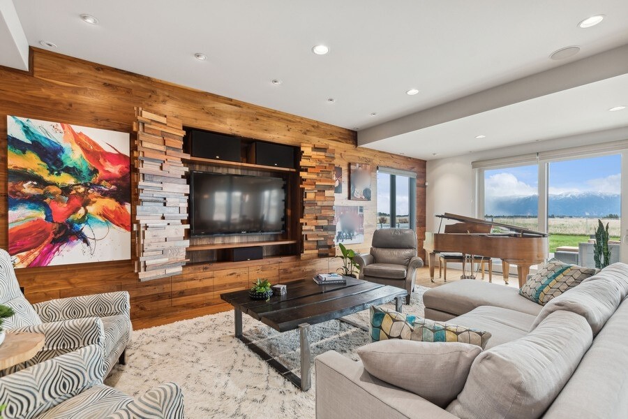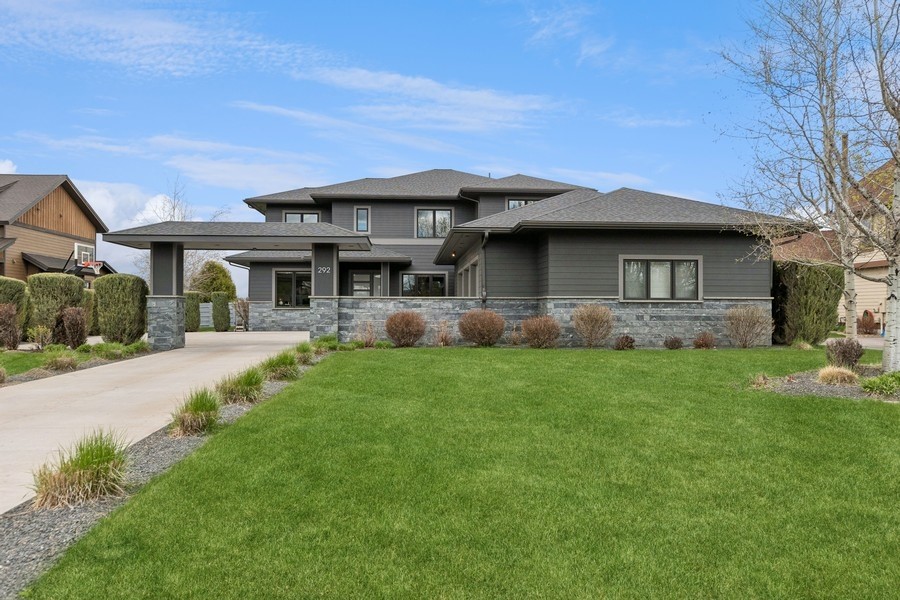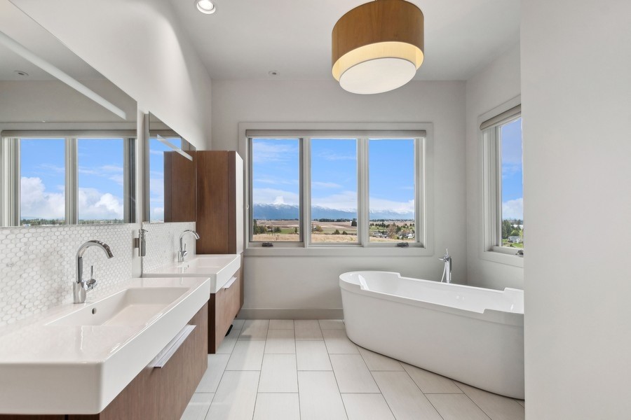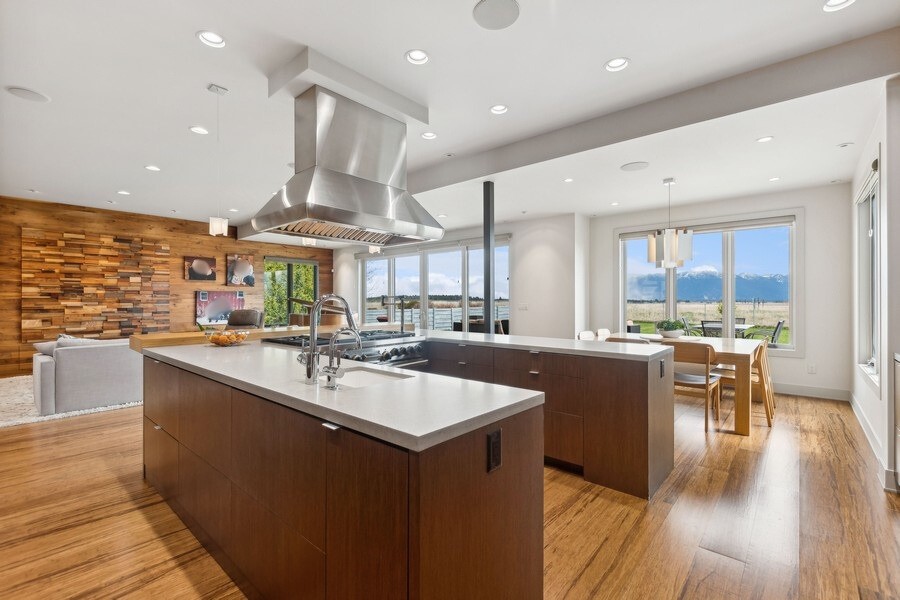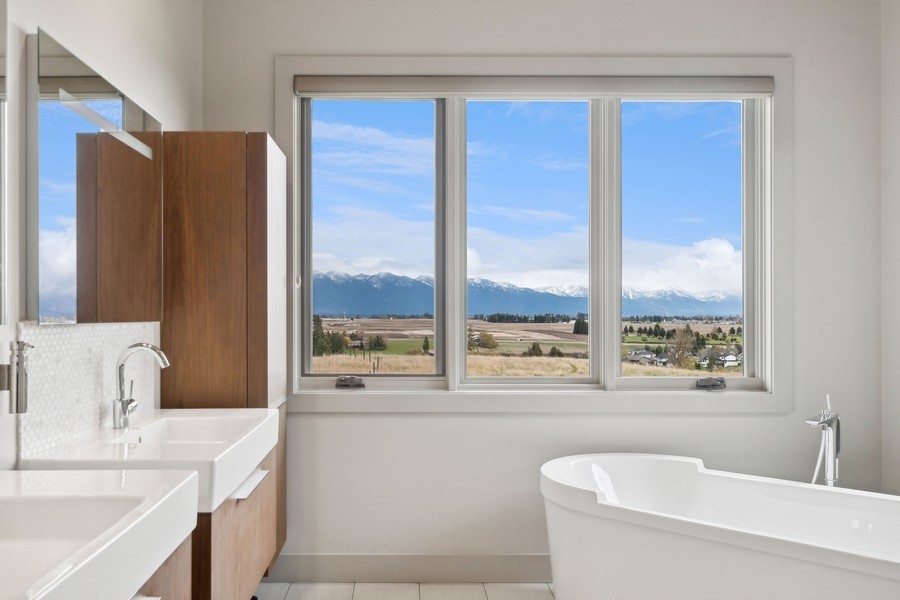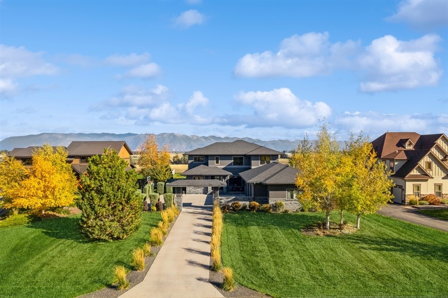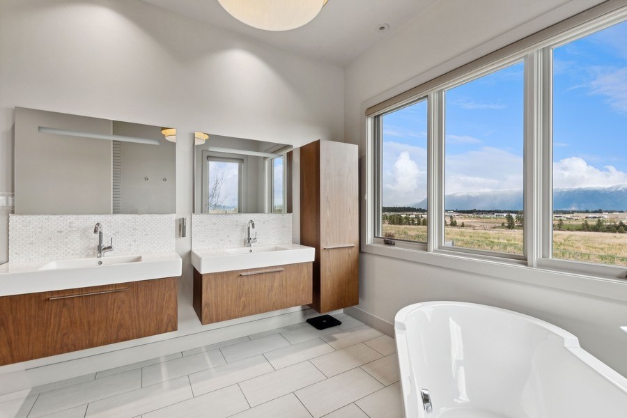 Experience refined luxury in this extraordinary contemporary estate in North Kalispell's prestigious Stillwater Estates. Set on 0.60 acres with sweeping views of the Swan Mountains, Glacier National Park, and Jackson Peak, this 6,157 SF custom residence offers 7 bedrooms, 8 bathrooms, a private office, bonus room, gym, and oversized 3-car garage with 152 linear feet of storage. Bamboo flooring, soaring 10-foot ceilings, built-in surround sound, and a concealed TV wall panel define the elegant main living spaces. The chef's kitchen is a showpiece, featuring an expansive island, exotic Wenge African hardwood cabinetry, Sub-Zero refrigerator and separate freezer, warming drawer, stand-alone ice maker, wine storage, dual sinks, instant hot water, and pot filler. Five en-suite bedrooms, radiant floor heat, five-zone HVAC, whole-home ventilation, humidity control, and premium insulation complete this exceptional offering. Designed for those who appreciate elevated living, this remarkable residence blends striking contemporary design with the finest in comfort, craftsmanship, and function. Every detail has been thoughtfully curated, from the rich texture of exotic Wenge African hardwood cabinetry to the seamless flow of bamboo flooring throughout the main level.