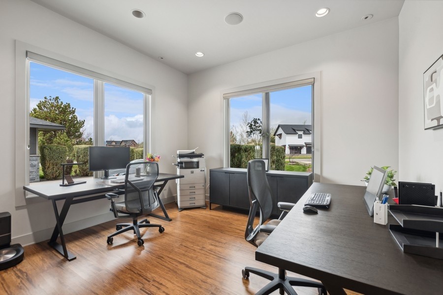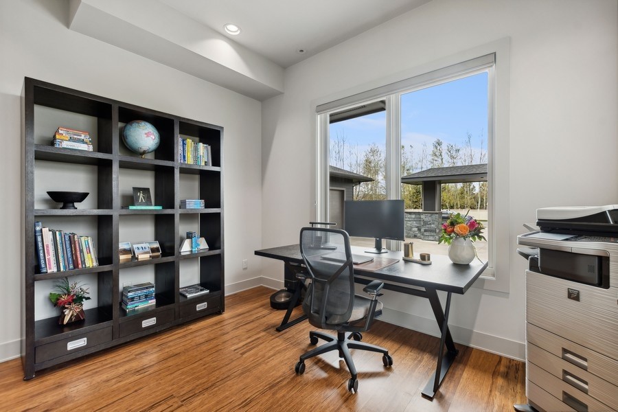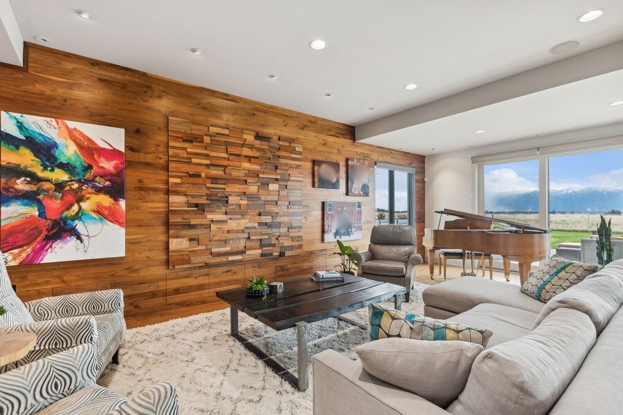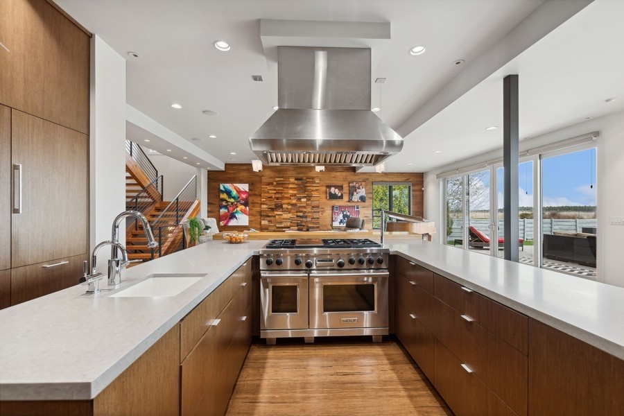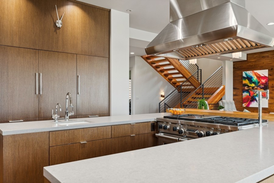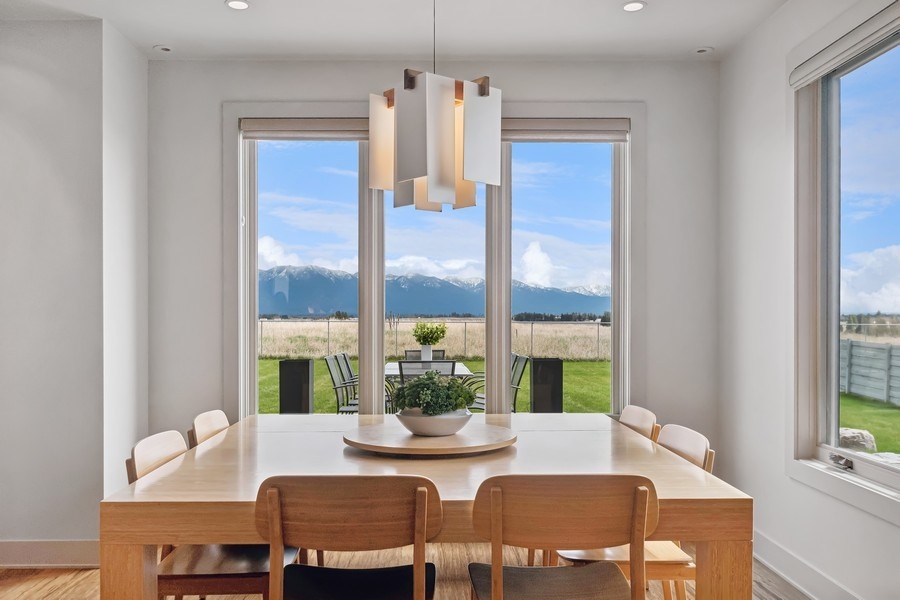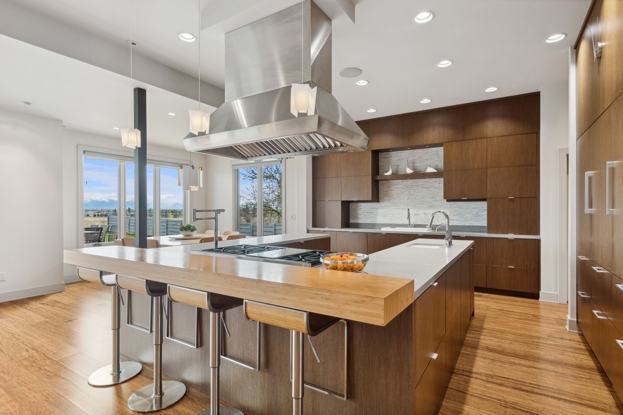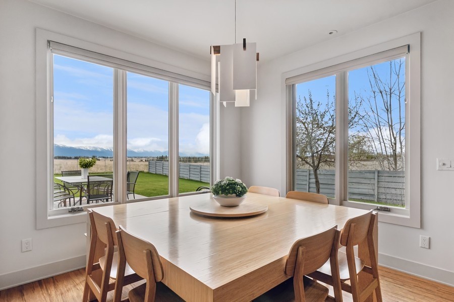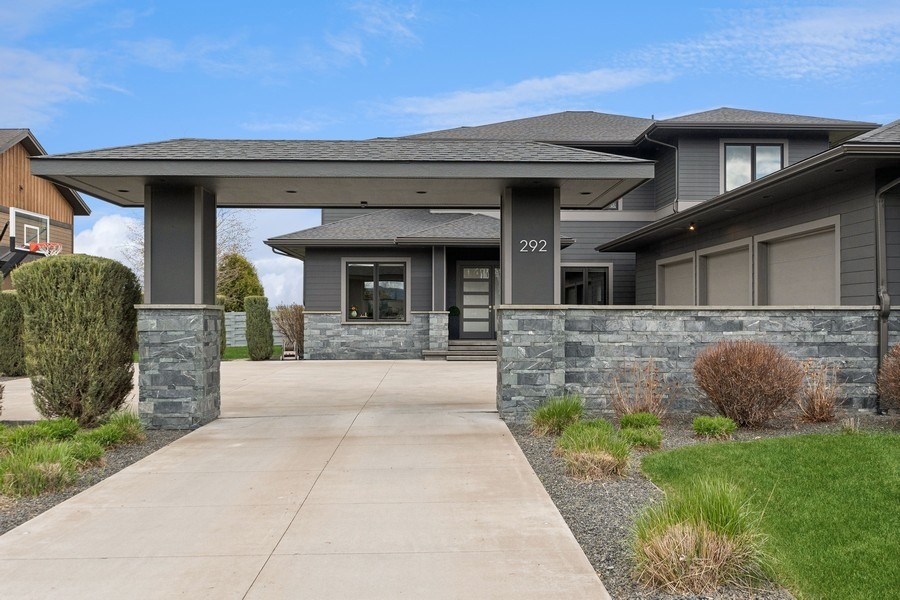 Experience refined luxury in this extraordinary contemporary estate in North Kalispell's prestigious Stillwater Estates. Set on 0.60 acres with sweeping views of the Swan Mountains, Glacier National Park, and Jackson Peak, this 6,157 SF custom residence offers 7 bedrooms, 8 bathrooms, a private office, bonus room, gym, and oversized 3-car garage with 152 linear feet of storage. Bamboo flooring, soaring 10-foot ceilings, built-in surround sound, and a concealed TV wall panel define the elegant main living spaces. The chef's kitchen is a showpiece, featuring an expansive island, exotic Wenge African hardwood cabinetry, Sub-Zero refrigerator and separate freezer, warming drawer, stand-alone ice maker, wine storage, dual sinks, instant hot water, and pot filler. Five en-suite bedrooms, radiant floor heat, five-zone HVAC, whole-home ventilation, humidity control, and premium insulation complete this exceptional offering. Designed for those who appreciate elevated living, this remarkable residence blends striking contemporary design with the finest in comfort, craftsmanship, and function. Every detail has been thoughtfully curated, from the rich texture of exotic Wenge African hardwood cabinetry to the seamless flow of bamboo flooring throughout the main level.