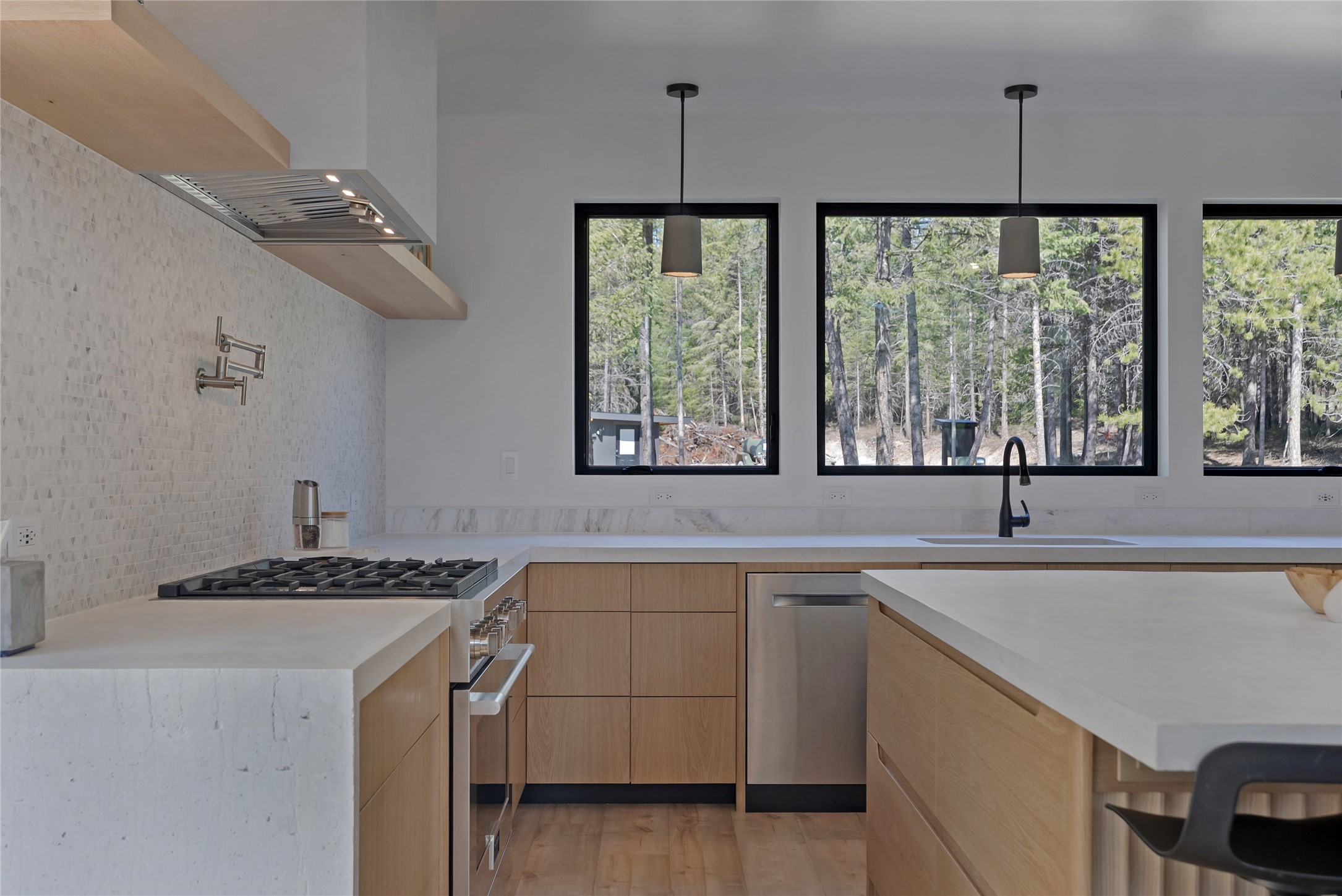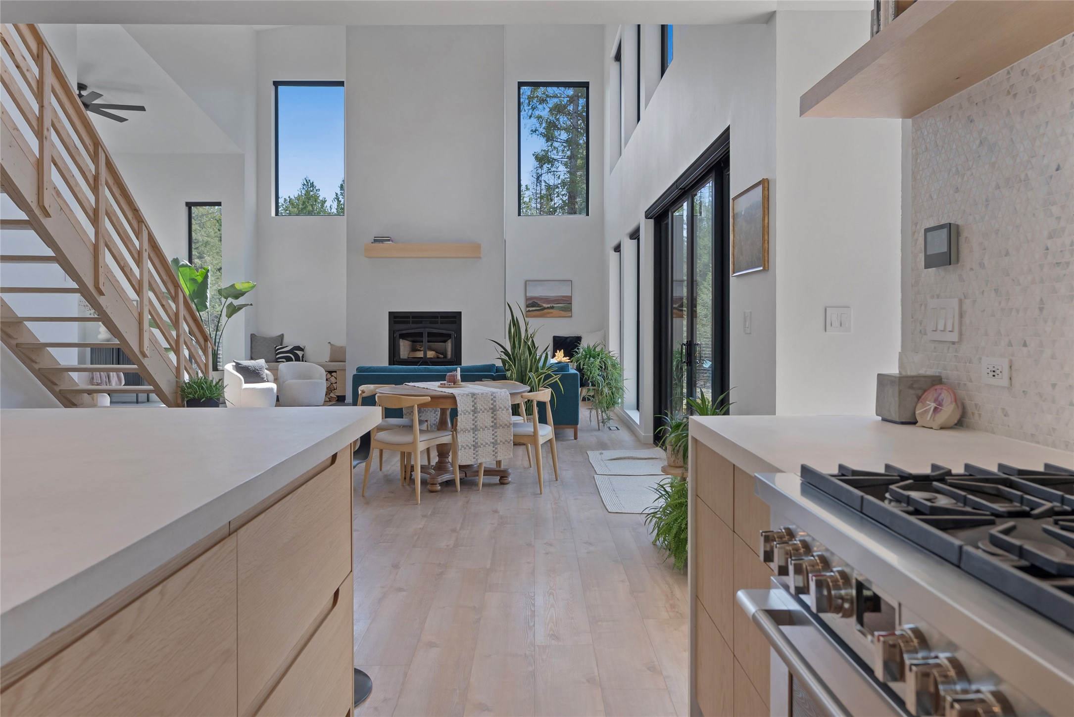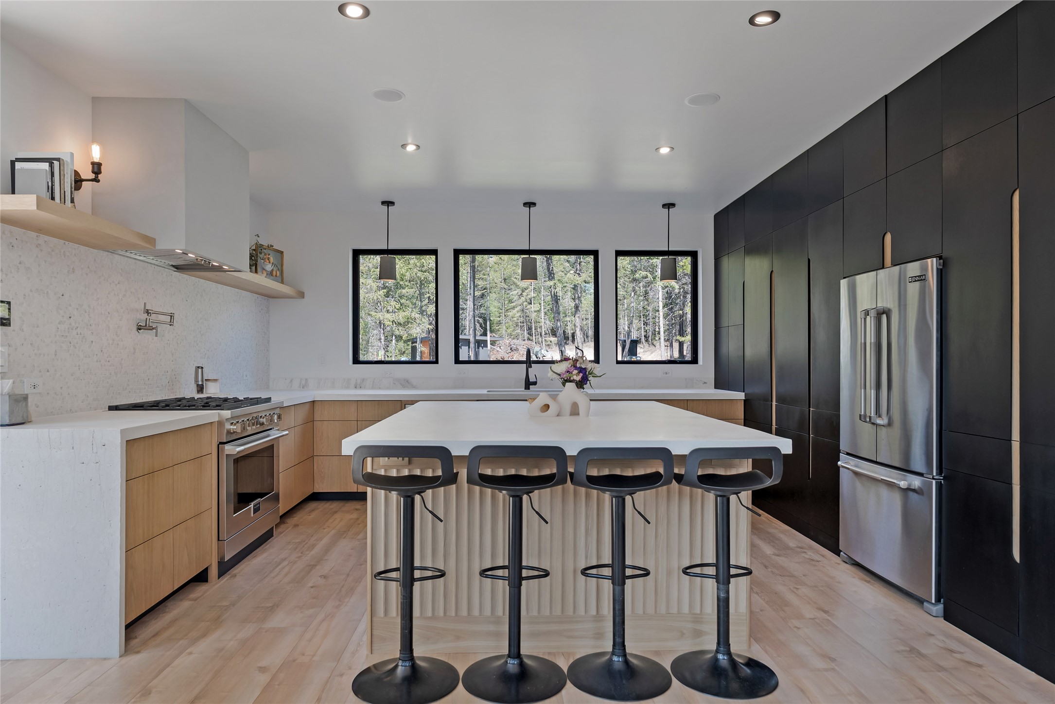 Tucked away on over 10 acres, this new mountain-modern home blends privacy, serenity, and thoughtful design--just minutes from town. Native pines, tamaracks, and organic trails surround a private pond, inviting a slower pace of living. With 3,600+ sq ft, the home features 4 bedrooms, 3.5 baths, two living areas, and a wood-burning fireplace. 44 windows and 9' ceilings create bright, open spaces that bring the outdoors in. The kitchen centers the home with custom cabinetry, waterfall concrete counters, a hidden coffee bar, and a butler's pantry with a second sink for convenience. The primary suite offers outdoor access, a Roman clay fireplace wall, a spa-like bath with heated floors, a deep soaking tub, and a rainfall shower. Beyond the home, enjoy the fenced garden, gather around the fire pit at dusk, or take in the peace of your surroundings. Infrastructure is in place for a future guest house or workshop. The Perfect Balance of Modern Living and Wild Montana Beauty
