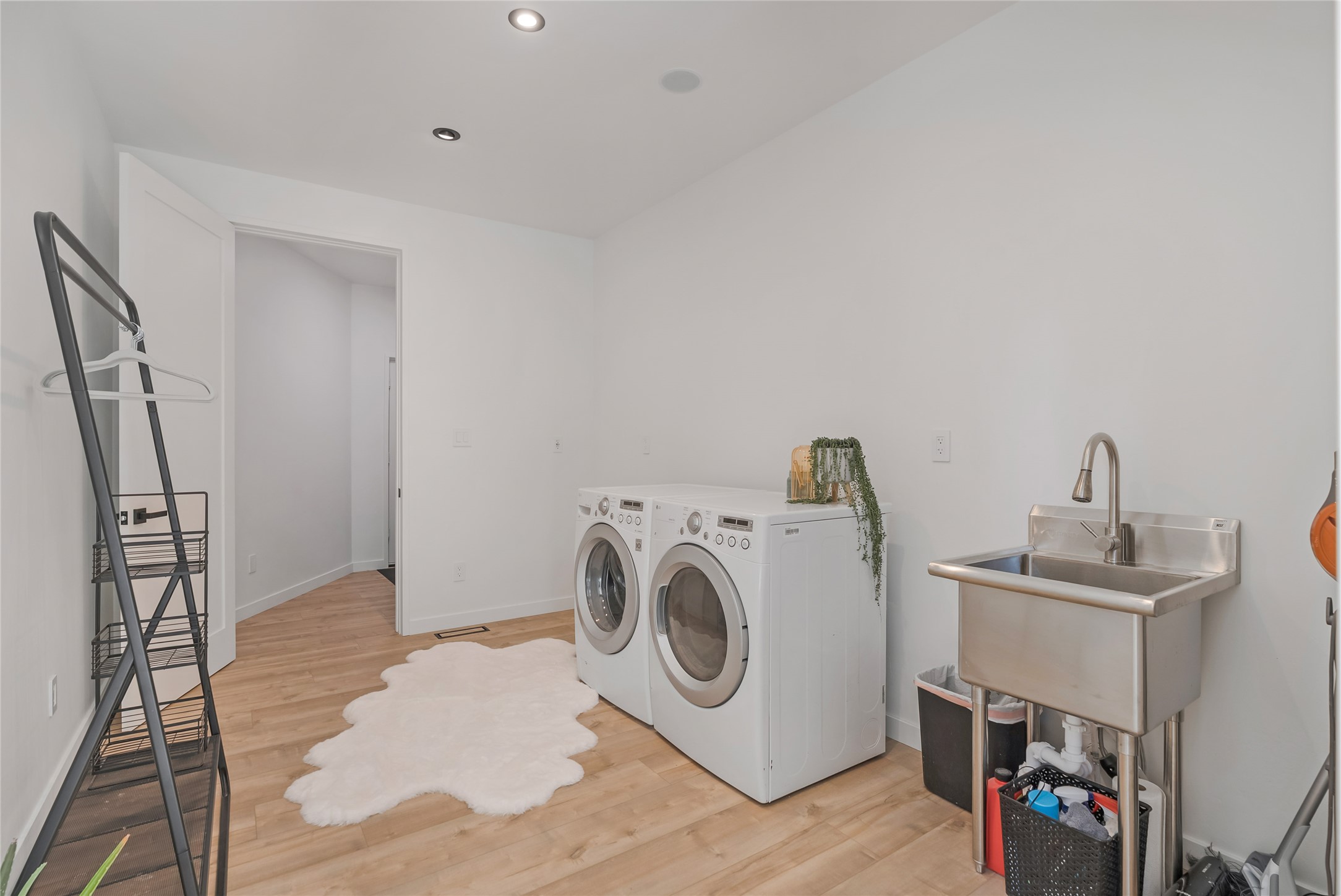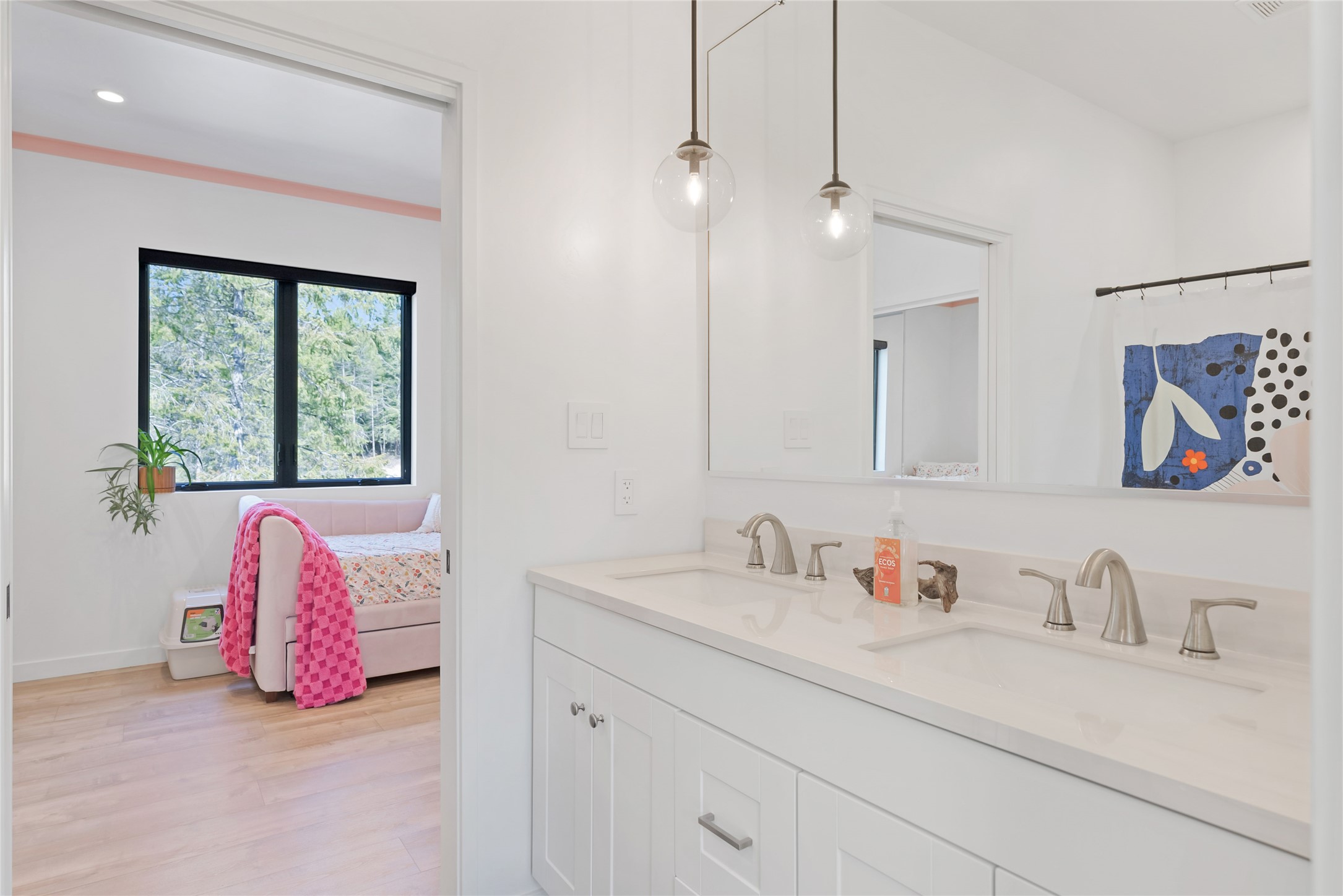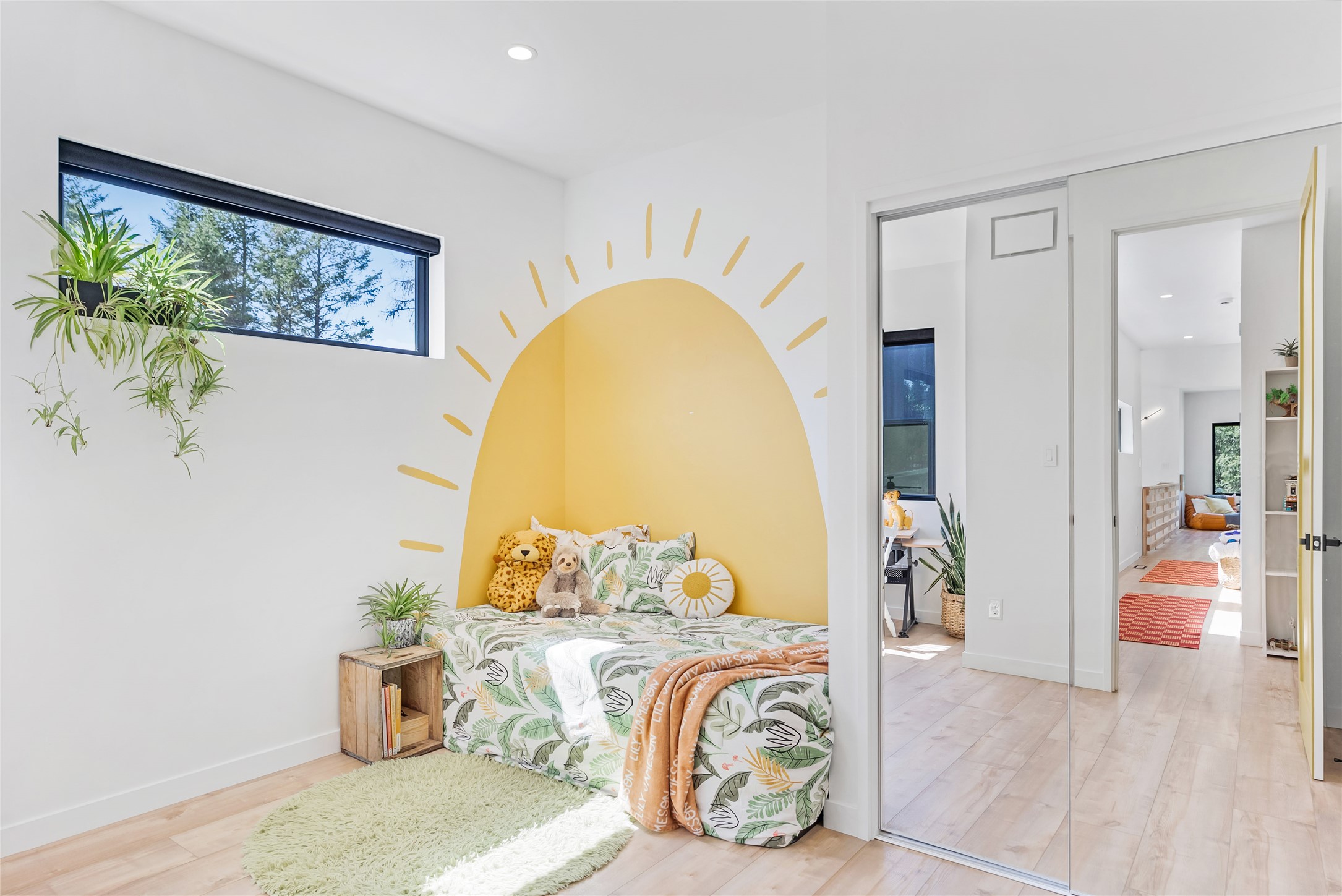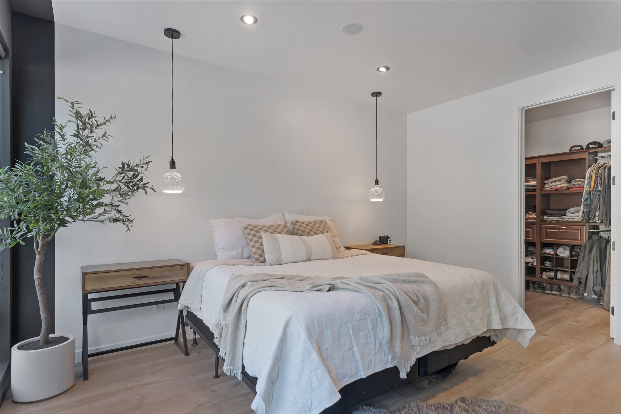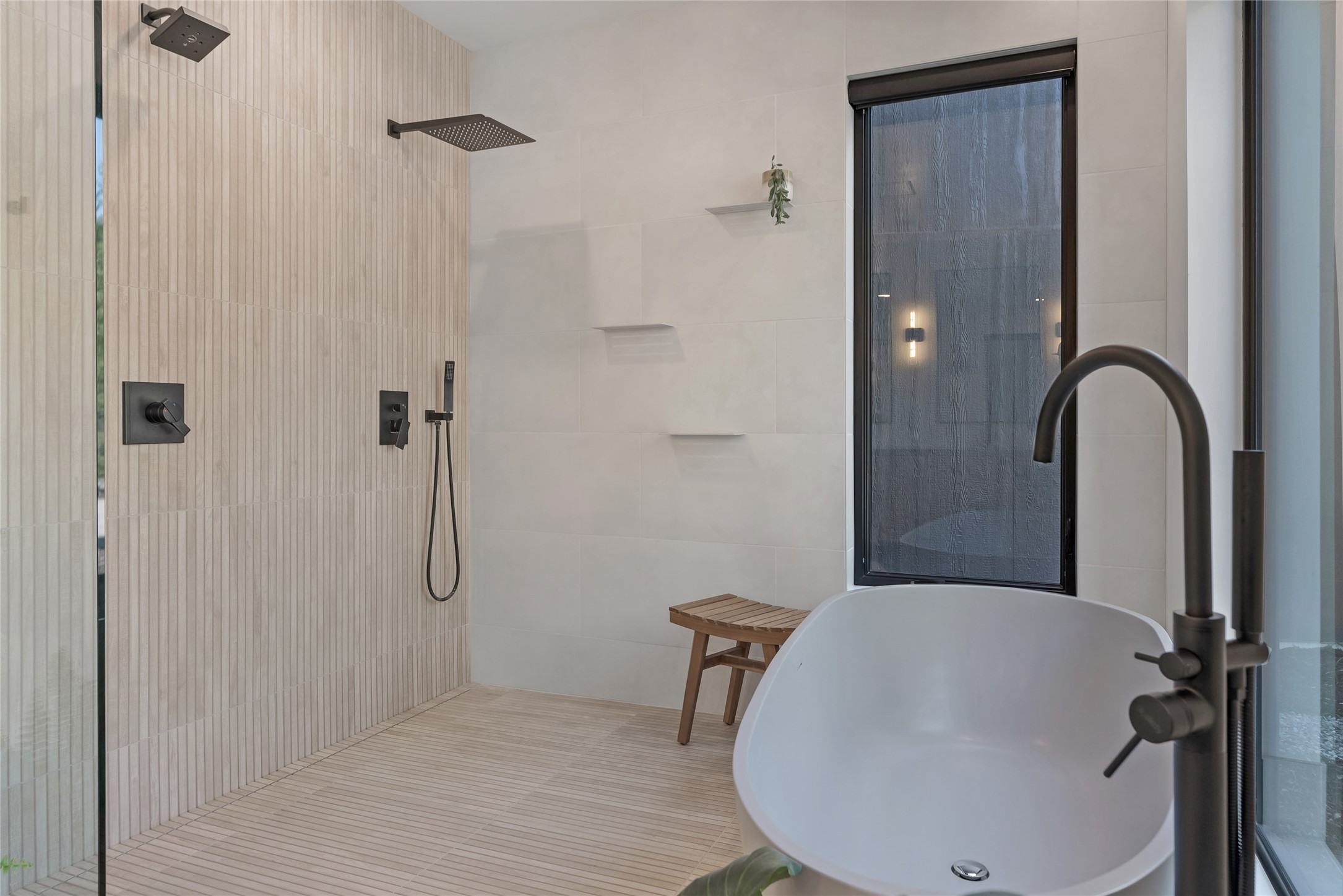 The primary suite is a private retreat within the home. With direct outdoor access and a fireplace wall finished in smooth Roman clay, it feels like a boutique getaway. The ensuite bath is spa-inspired, featuring heated floors, a deep soaking tub, and a rainfall shower--all designed to encourage relaxation at the end of a long day.